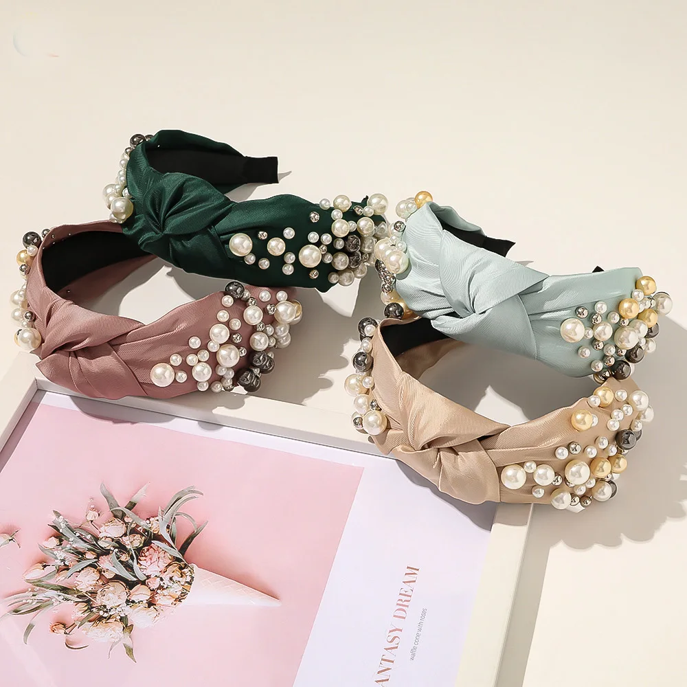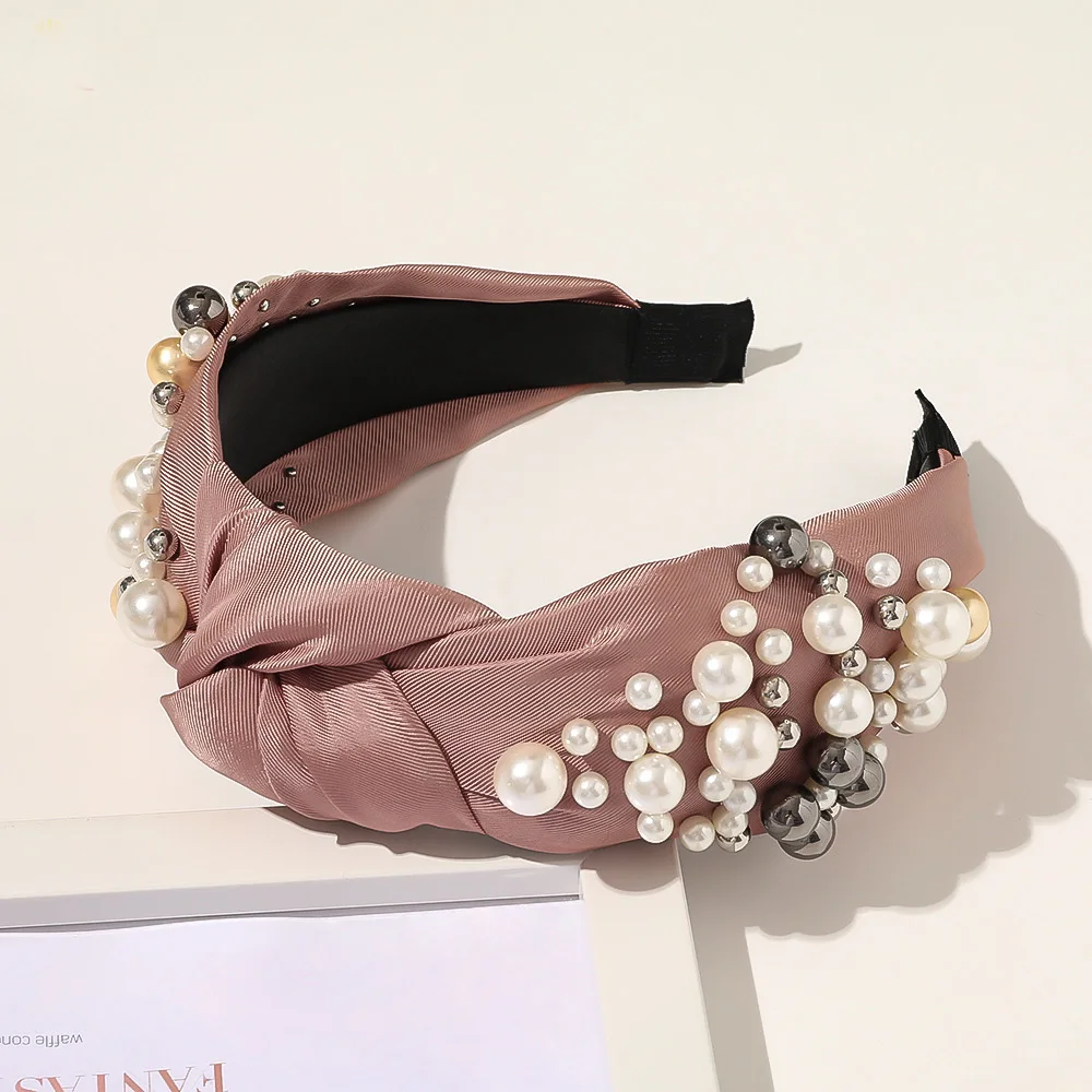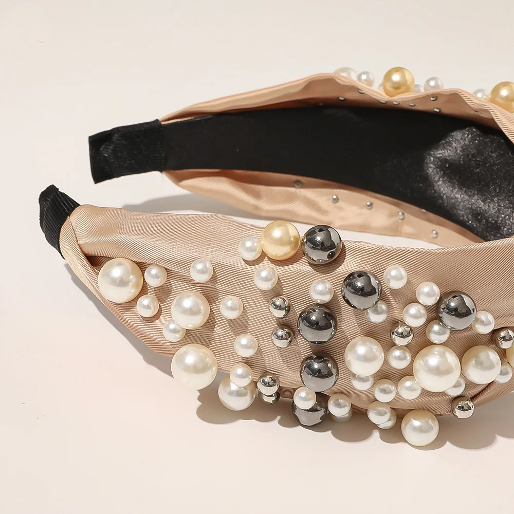PerlenEleganz™ – Der schicke Satin-Haarreif verziert mit Perlen und Metallkugeln.