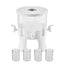 Das hochwertige, lebensmittelechte Kunststoffmaterial sorgt für eine sichere und langlebige Nutzung. Dank des ergonomischen Griffs liegt die Karaffe angenehm in der Hand und ermöglicht ein präzises Einschenken ohne Verschütten. Die moderne 4-Kammer-Konstruktion spart Platz und sorgt für eine stilvolle Präsentation auf jedem Tisch. Ideal für den täglichen Gebrauch oder besondere Anlässe!