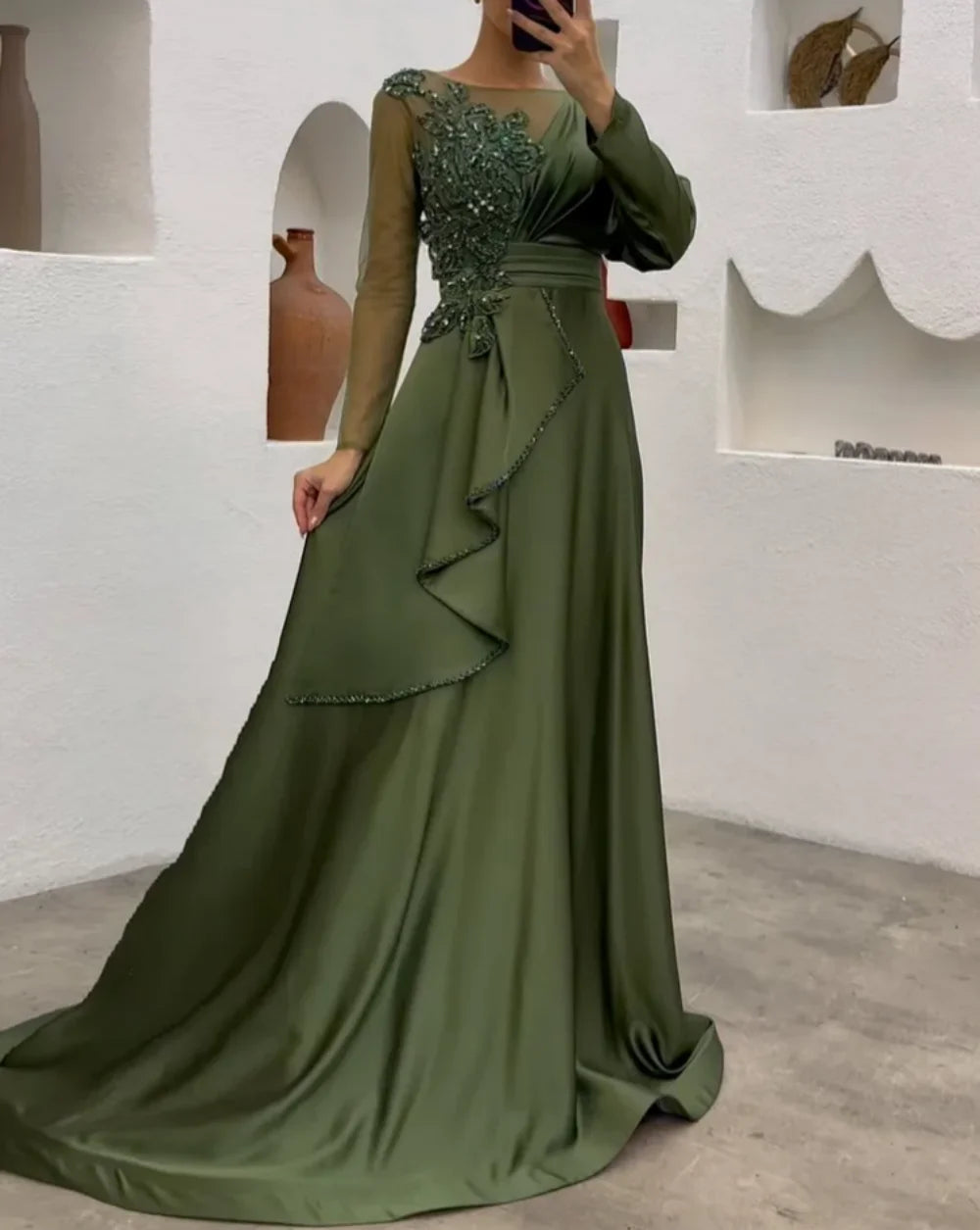 Das EleganceGown™ besticht durch seine hochwertige Verarbeitung und das feinste Material, das sich perfekt an Ihre Figur anschmiegt. Die aufwendigen Details und die fließenden Stoffe verleihen dem Kleid eine elegante Note und sorgen für einen unvergesslichen Auftritt. Egal ob auf einem Ball, einer Gala oder einer Hochzeit, dieses Kleid wird Sie strahlen lassen. Fühlen Sie sich selbstbewusst und genießen Sie die bewundernden Blicke.